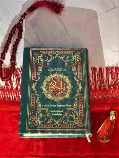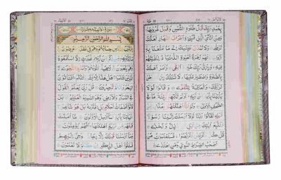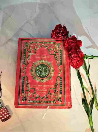 This Qur’an contains Colour Coded Tajweed rules in English. Seven different colour shades have been used, each representing a Tajweed rule. It helps the reciter to emphasize the accent, phonetics, rhythm, and temper of the Qura’nic recitation. It also helps the reciter to know how to pronounce the letters & on which letter emphasis to be laid.