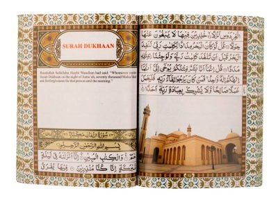 This book is a collection of effective supplications which you can recite daily. They are taken from the Holy Qur’an and hadiths, such as supplication for peace, tranquility of the heart, forgiveness, parents, etc. It also contains the Forty Durood (Salutations) and the 99 Names of Allah.