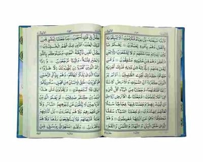 The Holy Quran is a compilation of the verbal revelations given to the Holy Prophet (S). It contains directives for its followers, historical accounts of certain Prophets, blessings for the believers, and warnings for the disbelievers. This is a blue coloured Quran with reference no. 3 in natural shade paper.