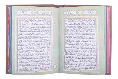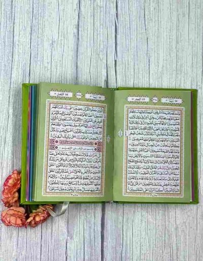 Each juzz/para/chapter is separated by a different colour, making a gradient in the form of a rainbow. This leather-bound Holy Quran is ideal for gifting to new reverts, friends, relatives, and your loved ones on occasions such as Ramadan, Eid, weddings, birthdays, etc.