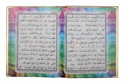 This Qur’an includes touches of soft colours to especially draw the attention of the young population. It is a beautiful innovation that adds to the treasures of the existing forms of the Holy Qur’an. Because of the unique design, and colours used in this Qur’an, it is good for your home and mosque as well as also gifting purposes.