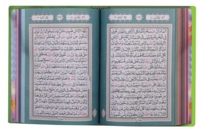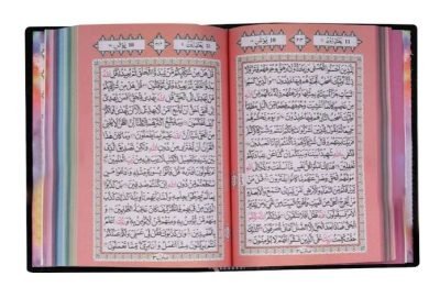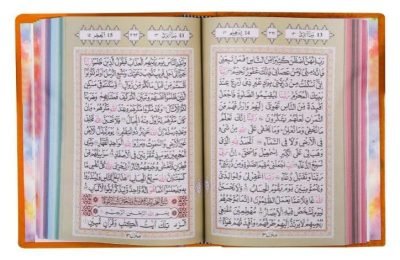 This unique rainbow-themed Quran includes touches of soft colours to draw the attention of the young generation and the public at large. It is a beautiful innovation that adds to the treasures of the existing model/forms of the Holy Qur’an. Because of the unique design, and colours used in this Qur’an, it is good for your home and mosque as well as for gifting purposes. Ayahs (verses) end on each page known as hafizi Quran.