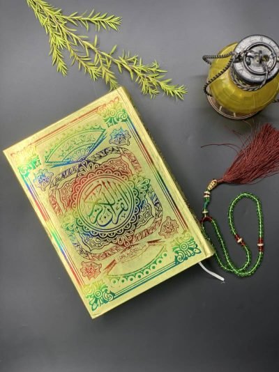 The Holy Quran is a compilation of the verbal revelations given to the Holy Prophet (S). It contains directives for its followers, historical accounts of certain Prophets, blessings for the believers, and warnings for the disbelievers. This is a golden-coloured Quran with reference no. 3.
